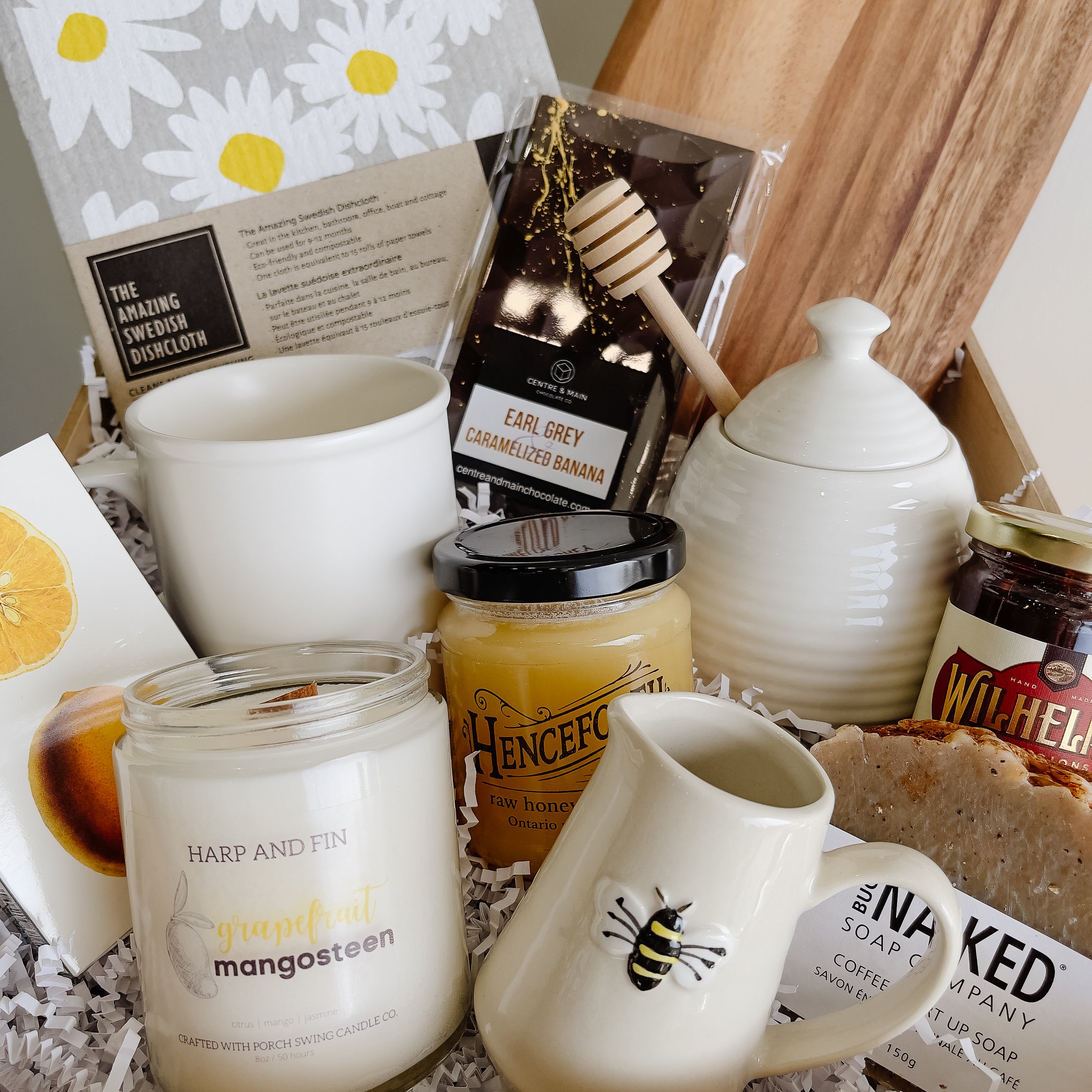We create custom floral arrangements, event florals, and luxury gift boxes, all crafted with intention and style. Over 90% of our collection is sourced from Canadian growers and artisans, making every piece fresh, sustainable, and community-rooted.