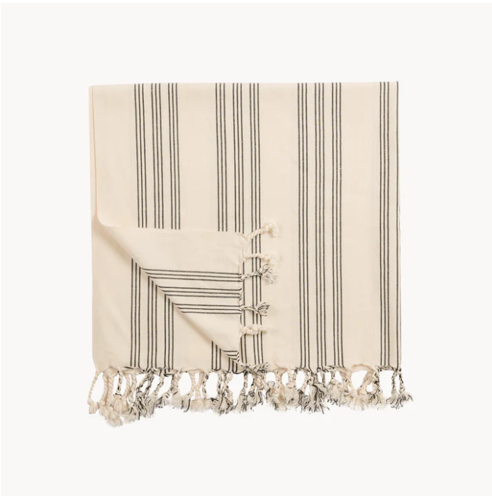 This flat-woven textile is ideal to complement your space with its neutral stripes or to bring your other design elements to life. Our focus always includes versatility, utility, and functionality - Turkish cotton is a more durable fibre that gets softer with every wash!