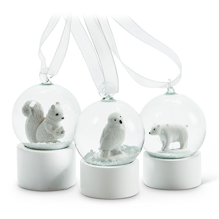 Shake up the way you decorate your Christmas tree with these stunning Animal Snow Globe Ornaments. Crafted out of resin and glass, these minimalist, all-white ornaments feature a delightful trio of winter forest creatures – squirrel, snowy owl and polar bear — in clear spherical snow globes to help bring the spirit of the season to your home. Three assorted styles, each sold separately.