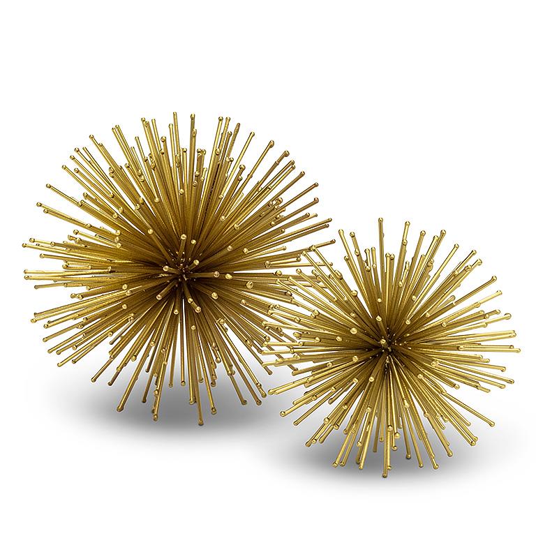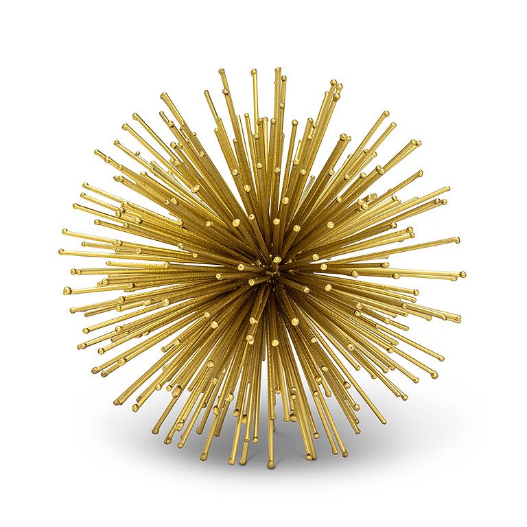 Make a decor statement with this stylish, large Starburst Ball in gold. Crafted out of metal, this unique objet d'art defies simple categorization – and makes an instant conversation piece wherever it sits, from mantles and centrepieces to curio cabinets and more. Smaller size also available.