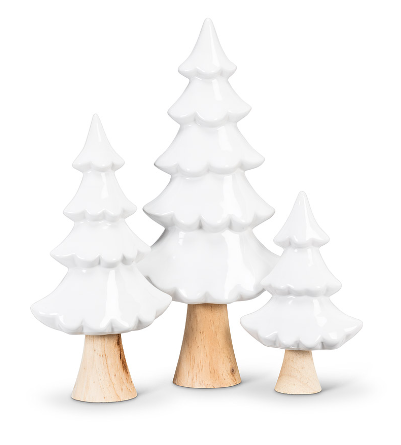 Elevate your holiday decor with this elegantly understated Simple Trees. Crafted out of ceramic and wood, this statuette’s natural wooden base is accented with a stylish, minimalist ceramic evergreen to add some contemporary style to mantles, decorative displays and more.