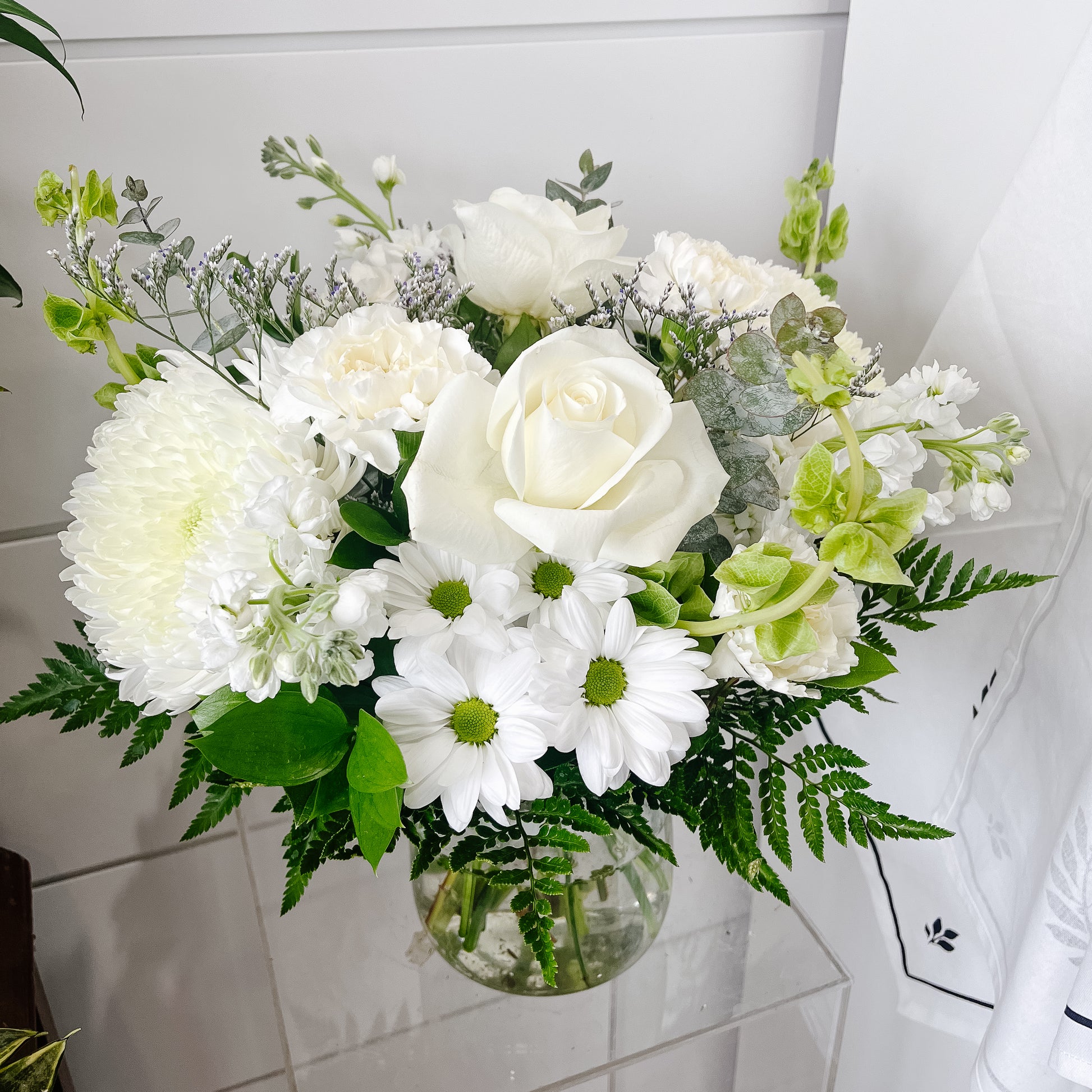 Named after Ainsley's mother Patricia, this arrangement emulates peace and and freshness. We use shades of white and lots of greenery to create a floral arrangement that feels crisp and stunning.